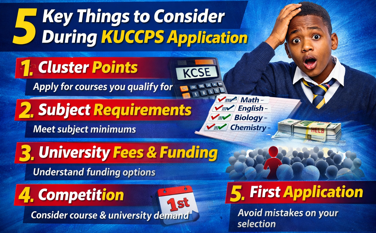 KUCCPS placement is not a guessing game. Understanding cluster points, subject requirements, funding rules, competition, and the importance of the first application can greatly improve your chances of success.