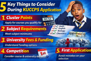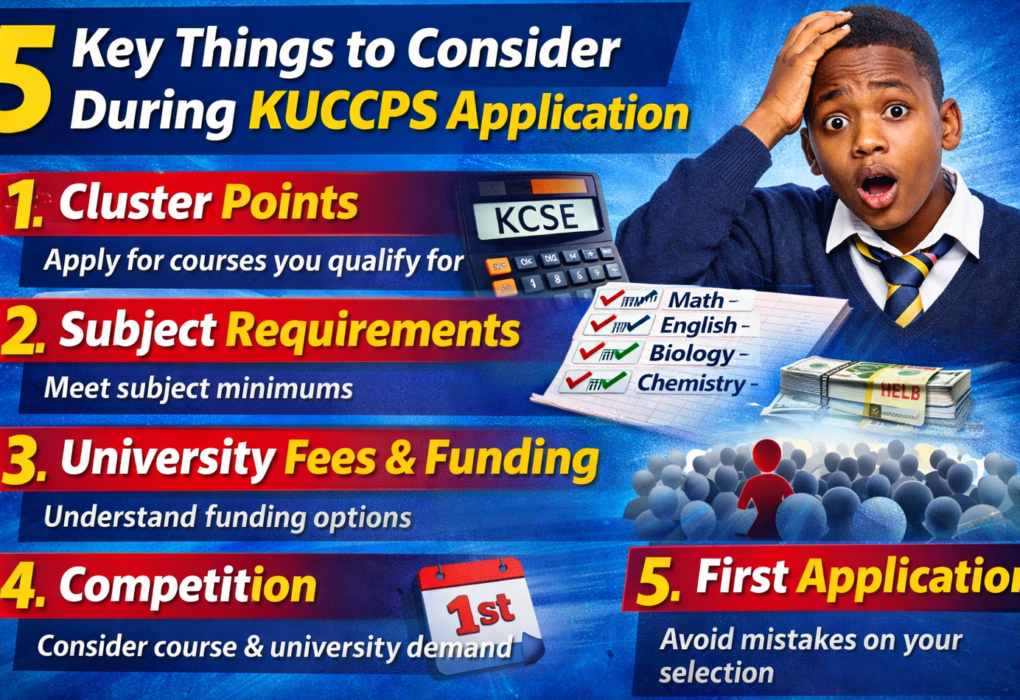 Choosing courses through KUCCPS is one of the most important decisions for KCSE candidates. Many students miss out on placement not because they performed poorly, but because of avoidable mistakes made during application. Below are five critical factors every applicant must consider to increase their chances of securing placement. Cluster points are the primary tool…